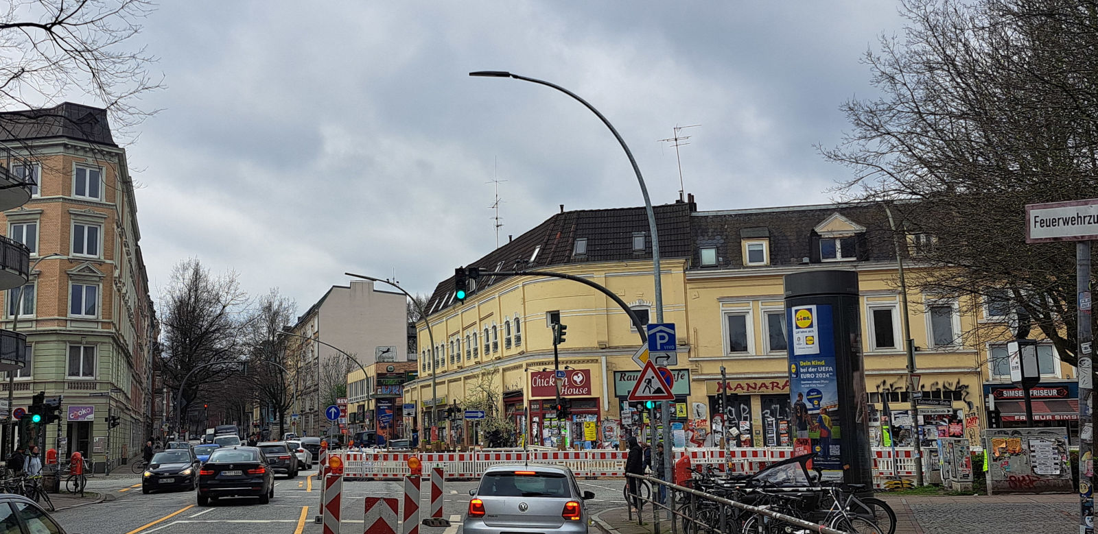 Die Kreuzung Barnerstraße / Bahrenfelder Straße ist die am höchsten frequentierte Kreuzung in Ottensen. Es gibt viel Verkehr, Abgase und Lärm. Der fehlende Bewegungsraum führt zu Gefahrensituationen und Unfällen. Die Flächen sind versiegelt und erhitzen sich im Sommer stark. Die Schaffung von Freiräumen mit Grün würde zu einer Entspannung der Situation führen. | |||||||||||||||||||||||
